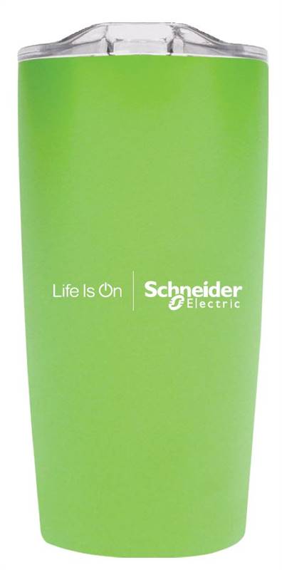 This double wall, vacuum insulated 18/8 stainless steel tumbler is designed to hold ice for up to 24 hours and keeps hot beverages HOT. Comes with a convenient clear lid with a drip-free seal. Imprinted with the Life Is On | Schneider Electric™ logo.