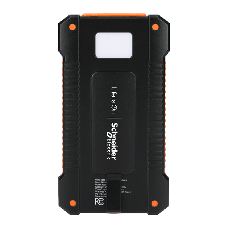 This power bank features a 5000mAh rechargeable lithium polymer battery. Integrated solar panel, flashlight, and clip for easy transport. Comes with a 39" USB-A to Type-C cable that can recharge the battery backup or charge devices. Please charge the power bank before initial use.